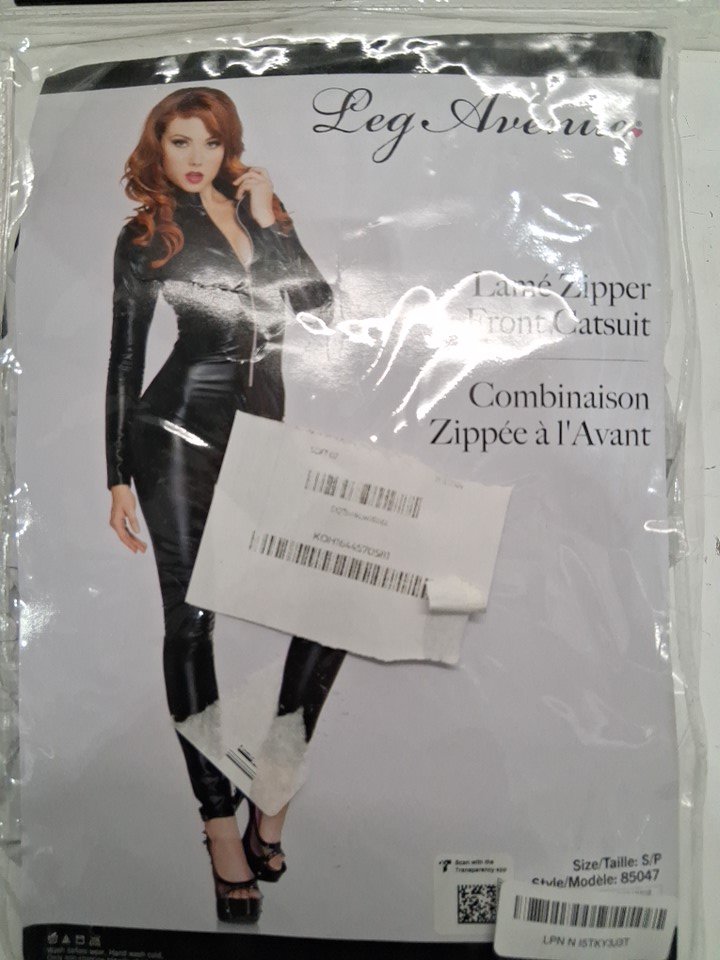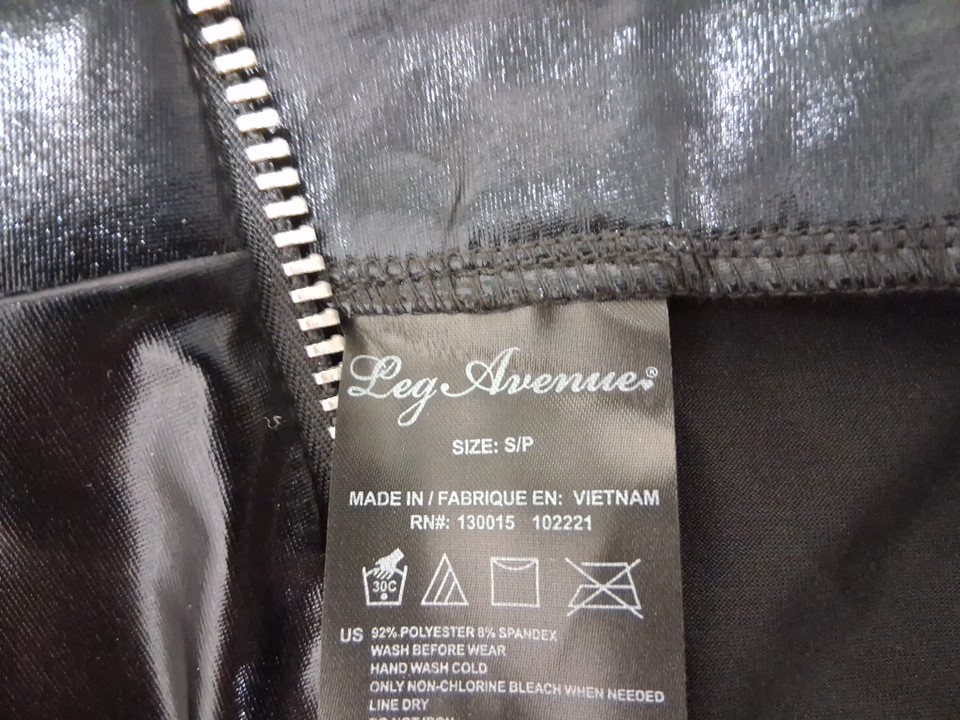 Leg Avenue wet look front zipper cat suit - Small - Black (Style: 85047)