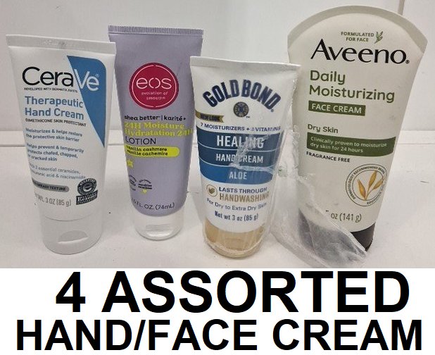 4 ASSORTED HAND/FACE CREAMS - ASSORTED TYPES/BRANDS/SIZES