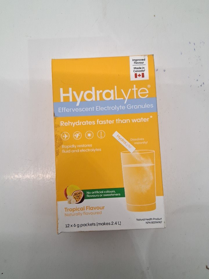 12pk hydralyte electrolyte granules - tropical flavour - 6g each