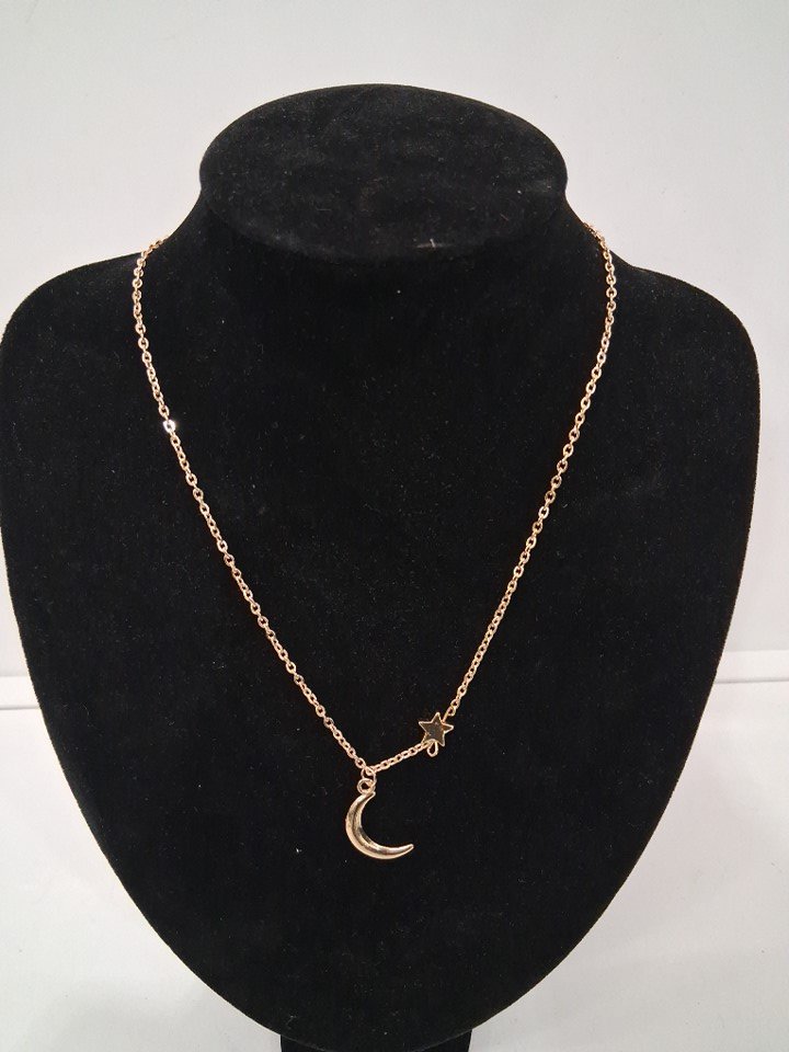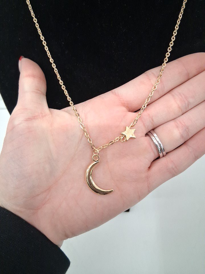 women's sewyer dainty STAR & MOON PENDANT necklace - 15.5" + 2" extender - BRASS