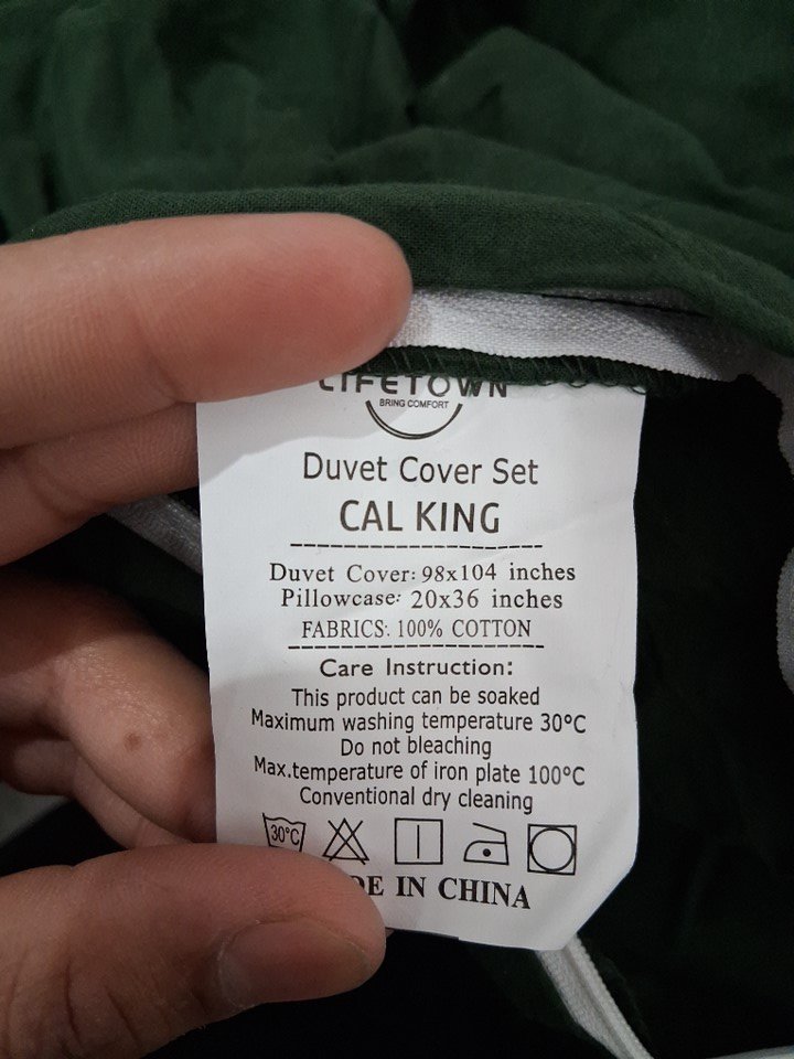 LIFETOWN 100% Washed Cotton Duvet Cover SET - Linen Feel Natural Wrinkle Lightweight Comfy - CALIFORNIA KING - GREEN