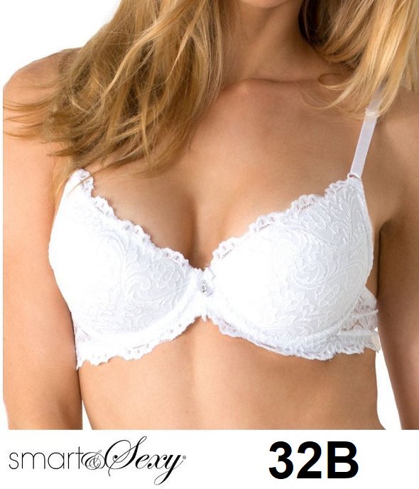 WOMEN'S SMART AND SEXY SIGNATURE LACE UNDERIWRE PUSH UP BRA - 32B - WHITE (style: 85046)