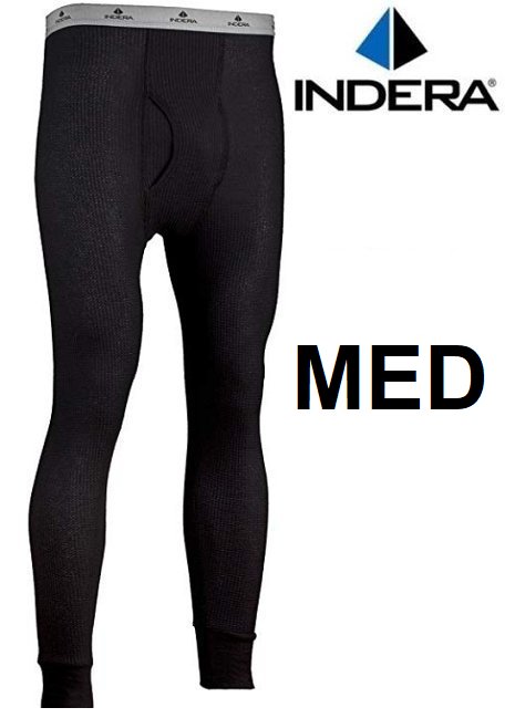 MEN'S INDERA TRADITIONAL LONG JOHNS THERMAL UNDERWEAR PANT - MEDIUM - BLACK