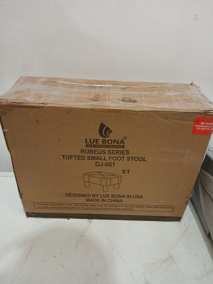 LUE BONA Small Tufted Foot Stool Rivet Fabric Ottoman with Plastic Legs - 9" height - beige (model: dj-001-01)