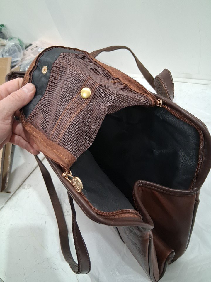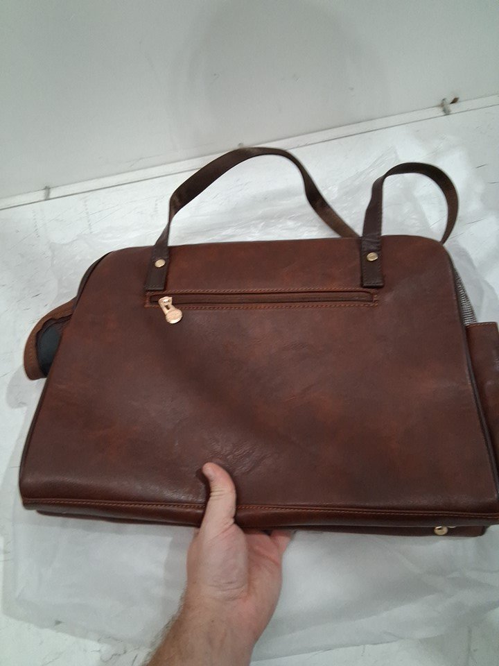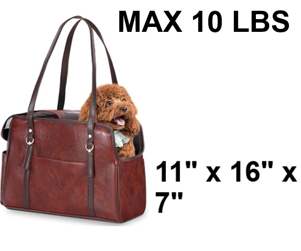 Lasaviin Dog Carrier purse, Fashion Leather Pet Carrier with Pockets - max 10lbs - 11" x 16" x 7" - brown