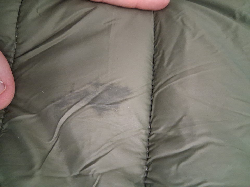 There is one decent scuff mark on the back that may not wash out and a tiny scuff mark on the left sleeve due to arriving unpackaged.