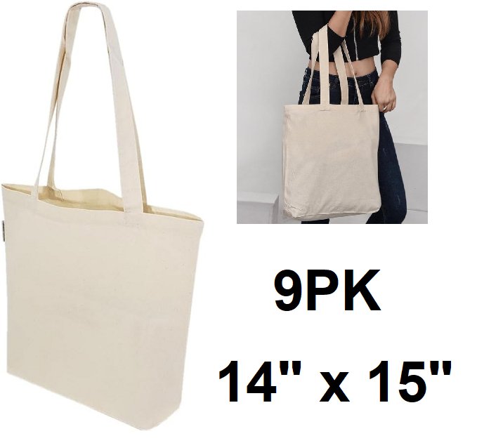 9pk canvas tote bags - 14" x 15" - beige