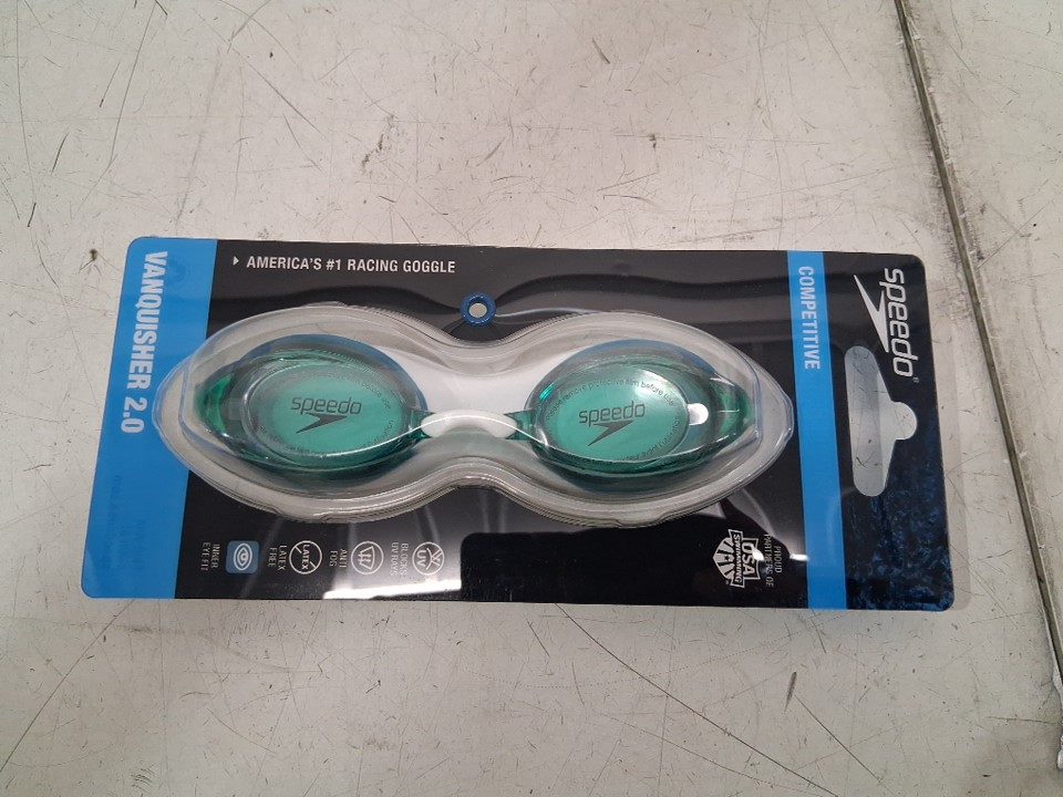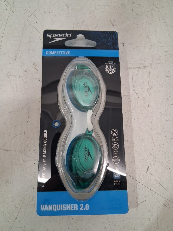 ADULT'S SPEEDO VANQUISHER 2.0 COMPETITIVE SWIM GOGGLES - ONE SIZE fits many - blue/JADE (model: USXVANQUISHER2.0A)
