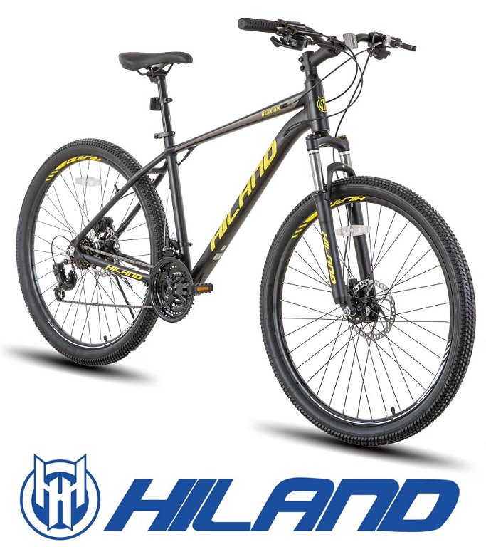 hiland aluminum 21 speed mountain bike - 27.5" - black/yellow (model: hhd015bk-27)