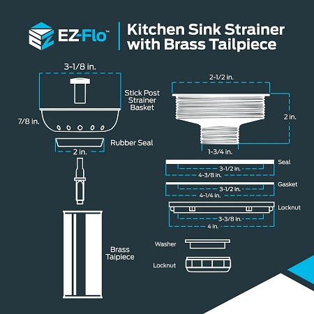 EZ-FLO SINK STRAINER WITH BRASS TAILPIECE - STAINLESS STEEL (MODEL: 30008)