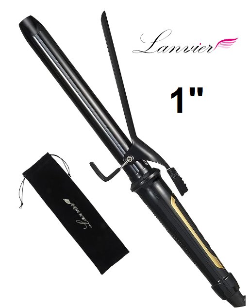 Lanvier Extra Long Hair Curling Iron with Ceramic Tourmaline Barrel - 1" - black\gold