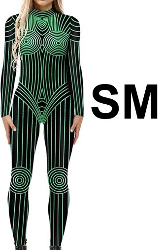 Women's Unbranded Long Sleeve One-Piece Skeleton Halloween Cosplay Costume - Small - Green/Black