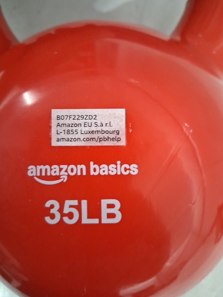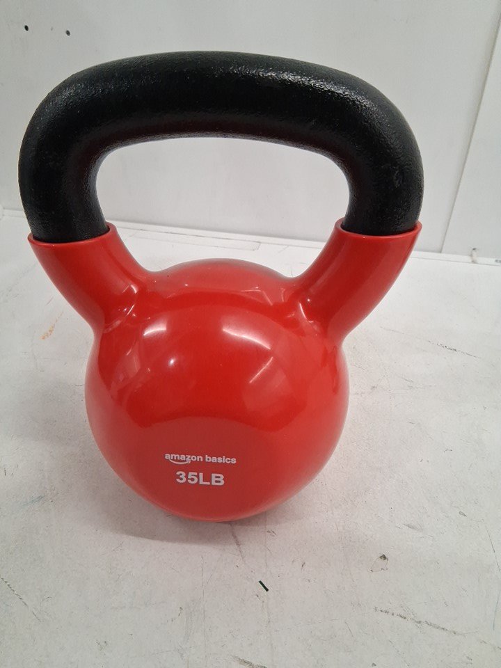 AMAZONBASICS 35LB VINYL COATED CAST IRON FITNESS KETTLEBELL - RED/black (model: ‎IR92007-35LB)