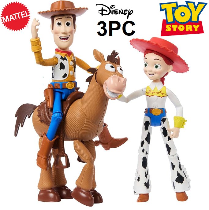 3pc Mattel Disney Pixar Storytellers "woody round-up pack" Toy Story set - 4" (model: JCF18)