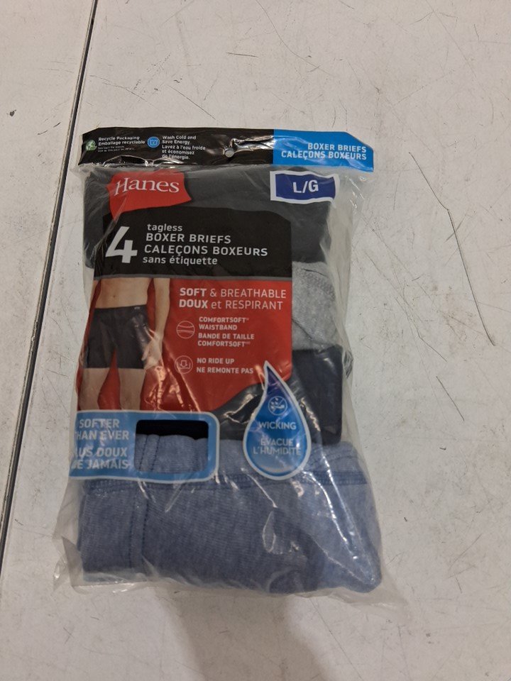 4pk mens hanes tagless boxer briefs - large - black/grey/BLUE