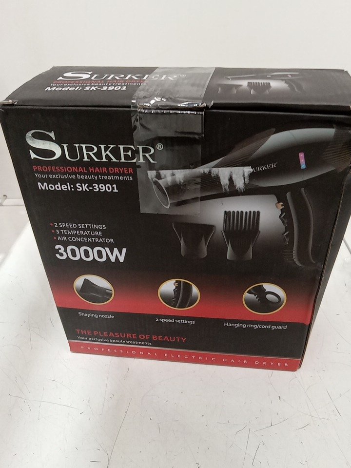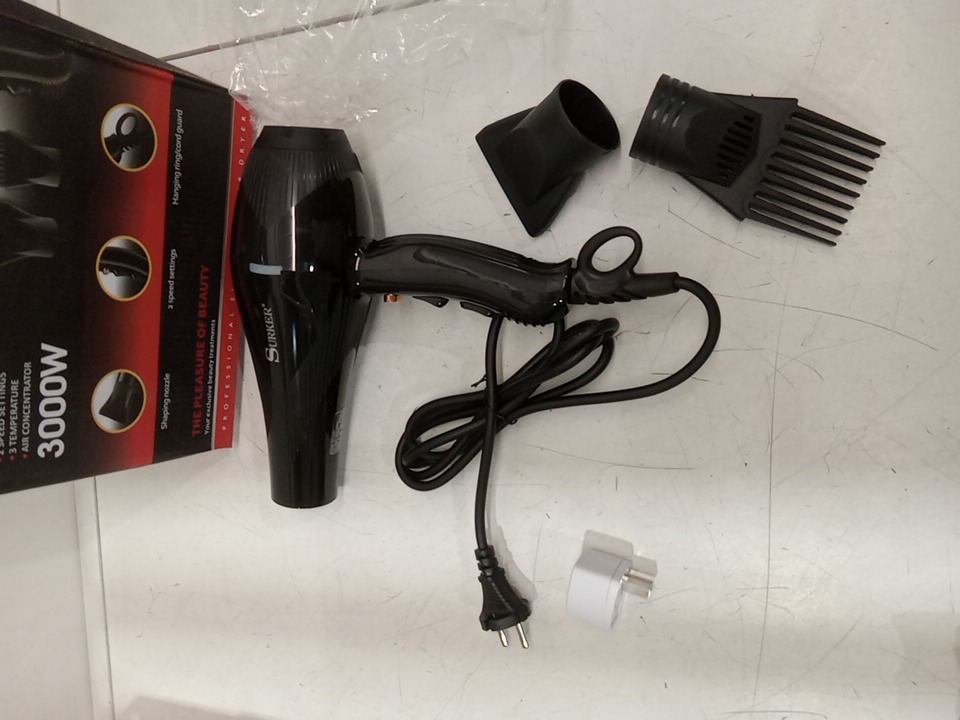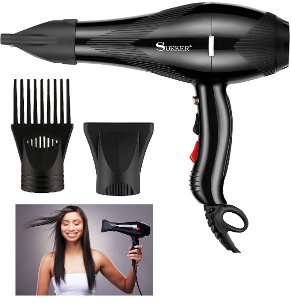 surker Hair Dryer with 2 Speed 3 Heat Setting, and Cool Shot Button *European plug*- black (MODEL: sk-3901)