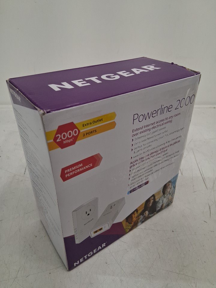 2PK NETGEAR Powerline Adapter Gigabit Ethernet Ports with Passthrough + Extra Outlet - Up to 2000 Mbps Speeds (Model: PLP2000)
