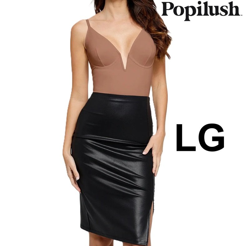 women's popilush Shapewear Deep V-Neck Low Back Sculpting Thong Bodysuit - large - nude