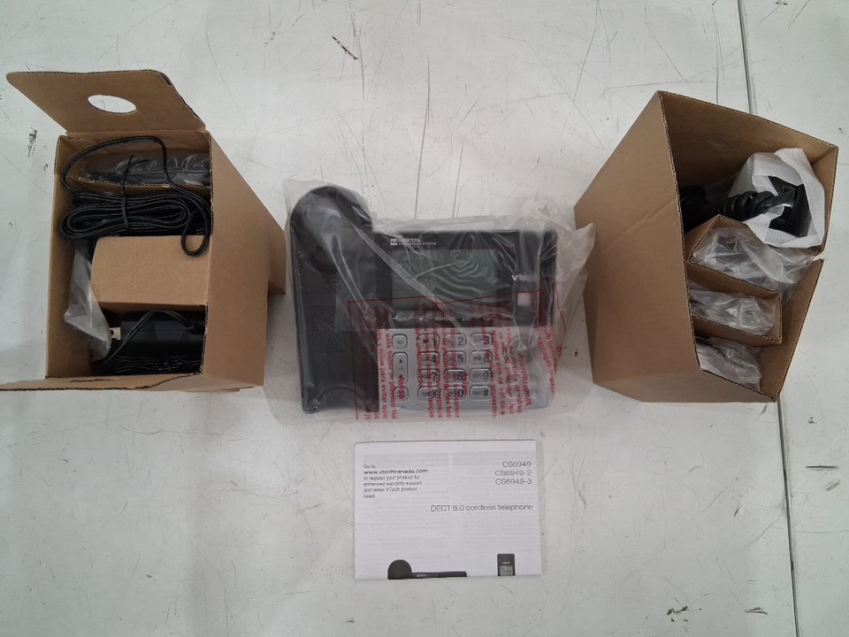 VTECH DECT 6.0 Corded/3-Cordless Telephone System WITH CALLER ID/CALL WAITING- BLACK/GREY - (MODEL:CS6949-3)