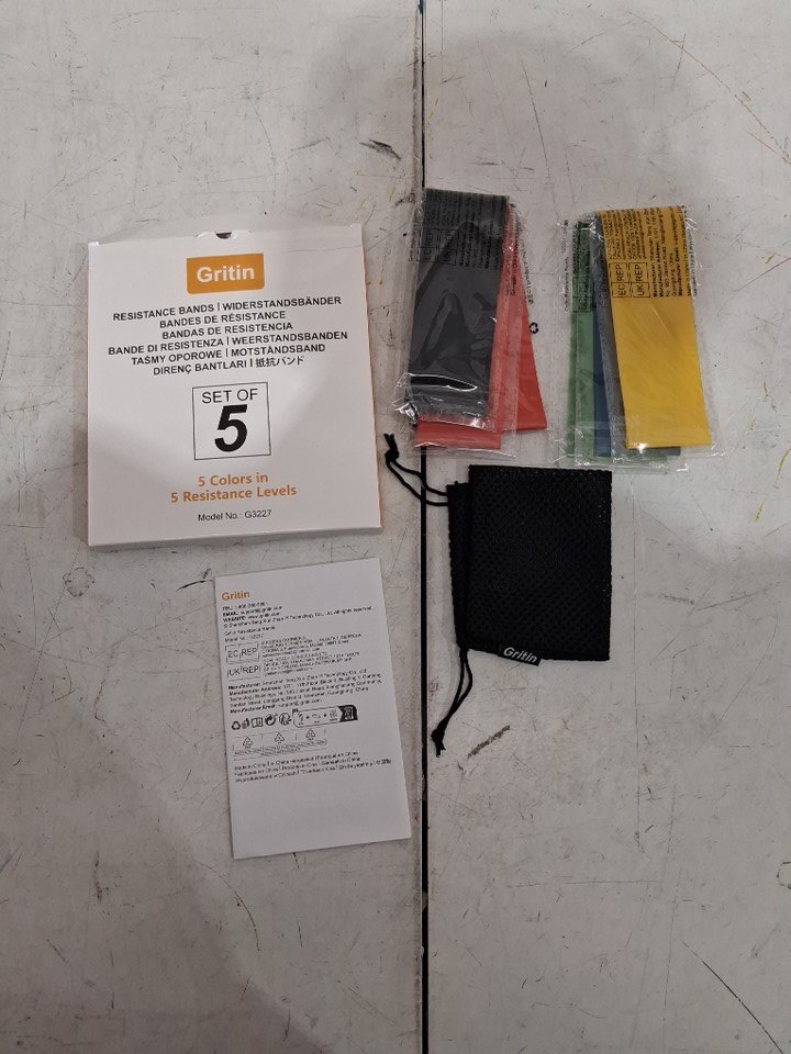 5PK GRITIN SKIN-FRIENDLY RESISTANCE FITNESS EXERCISE LOOP BANDS WITH 5 DIFFERENT RESISTANCE LEVELS - FREE CARRYING CASE INCLUDED - MULTICOLOUR