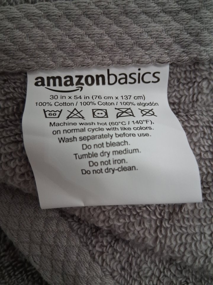 2PK Amazon Basics Cotton Quick-Dry Bath Towel - 30" x 54" - Grey