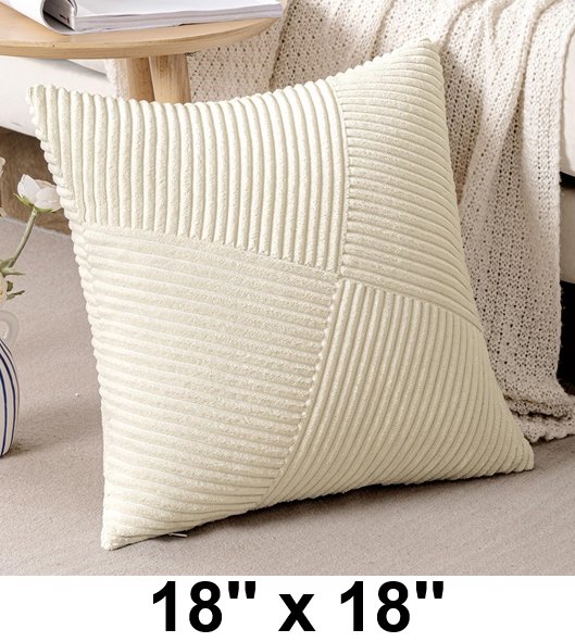 topfinel Windmill Striped Spliced Corduroy Pillow Cover only - 18'' x 18'' - cream