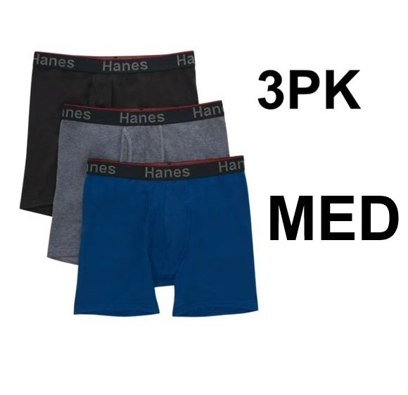3pk hanes tagless comfort flex fit boxers- size medium - black/grey/blue