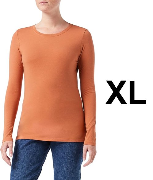 Women's amazon essential Classic-Fit Long-Sleeve Crewneck T-Shirt - extra large- BRICK - (model: ‎ WAE45094FL18)