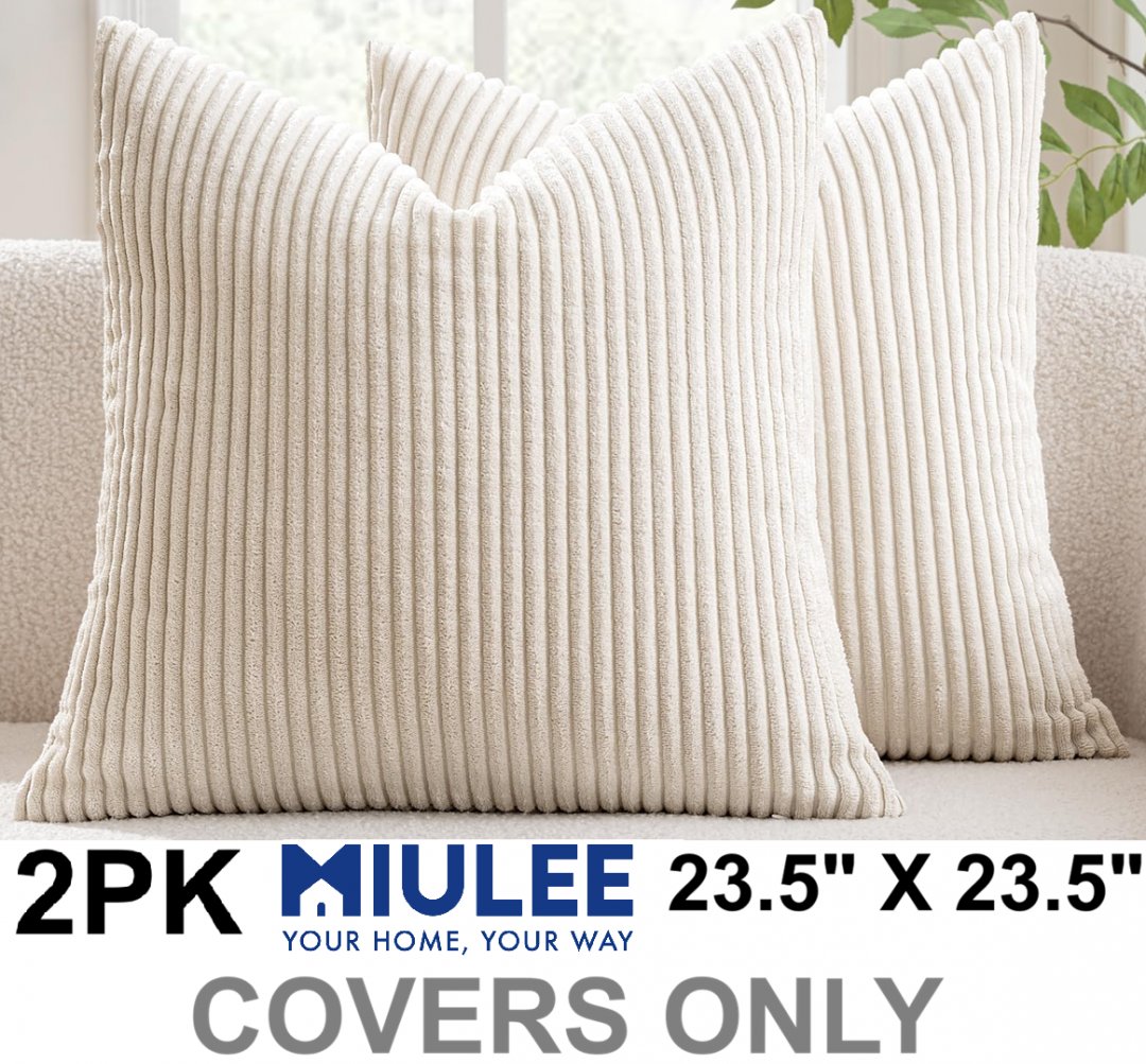 2pk miulee fluffy corduroy decorative throw pillow covers - 23.5" x 23.5" - cream/white