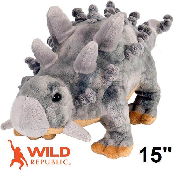 wild republic dinosauria ankylosaurus plush - 15" - grey