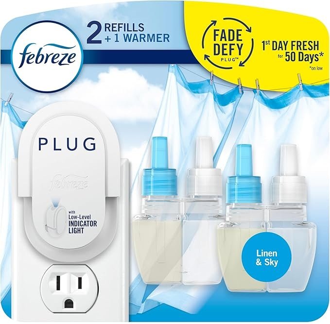 FEBREZE PLUG AIR FRESHENER WARMER AND 2 SCENTED OIL AIR FRESHENER refills - linen & sky scent