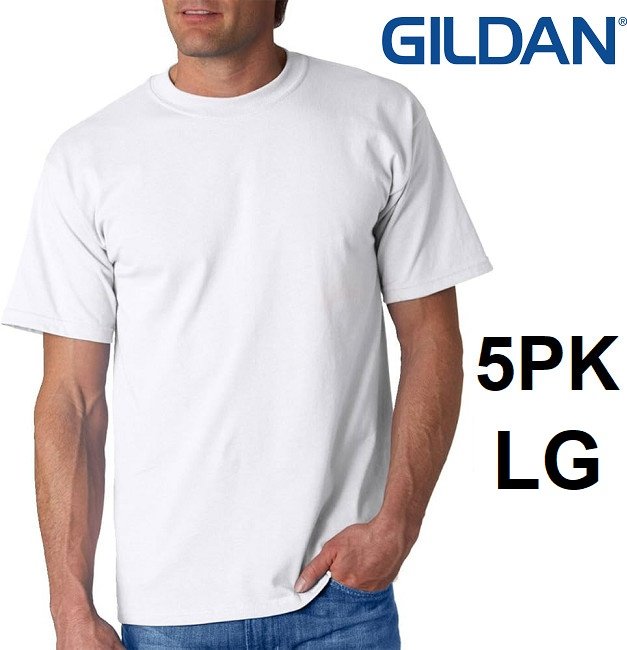 5pk men's gildan tagless crew neck t-shirt - large - white