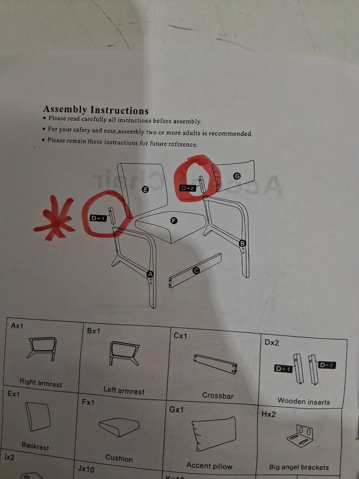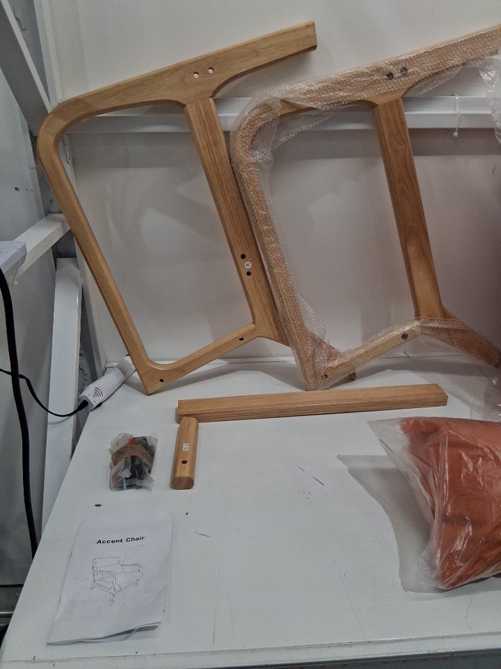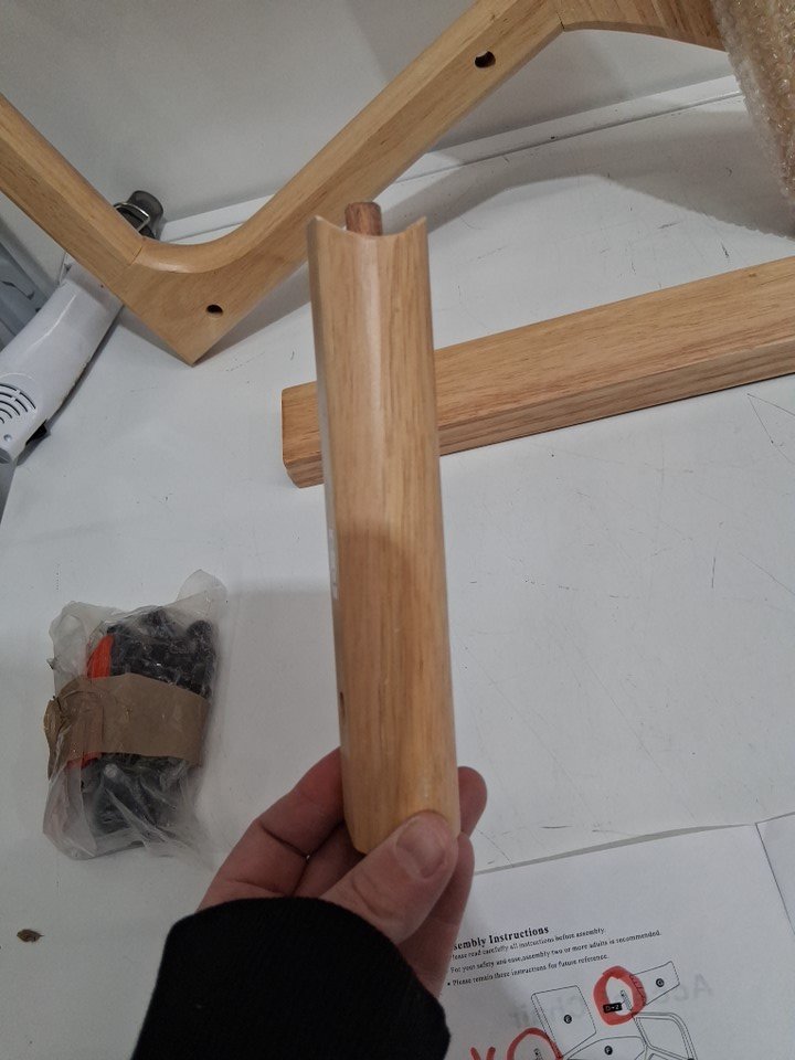 this is missing one small wooden attachment, please see photo's. this may be something that can be done DYI. The circled with * is the piece missing.
