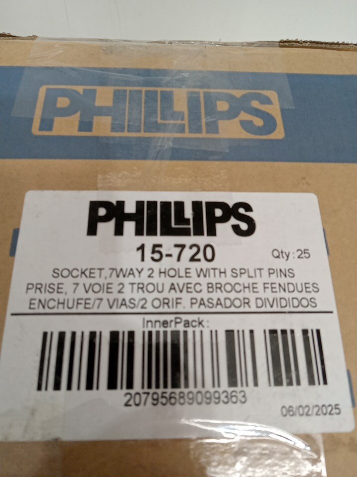 25PK Phillips Industries 7-Way 2 Hole Trailer Receptacle Socket With Spring - (Model: 15-720)