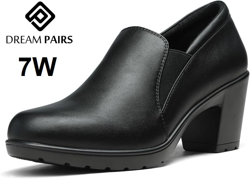 women's dream pairs chunky block pump shoes - size 7 wide - black (style: dpu214-w)