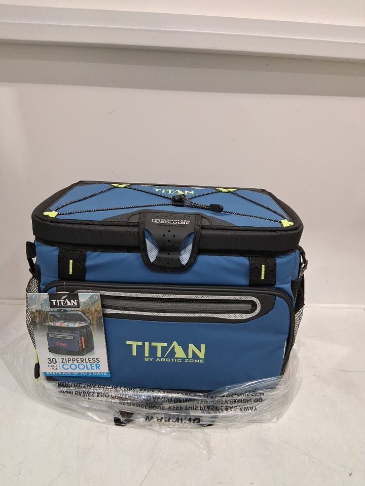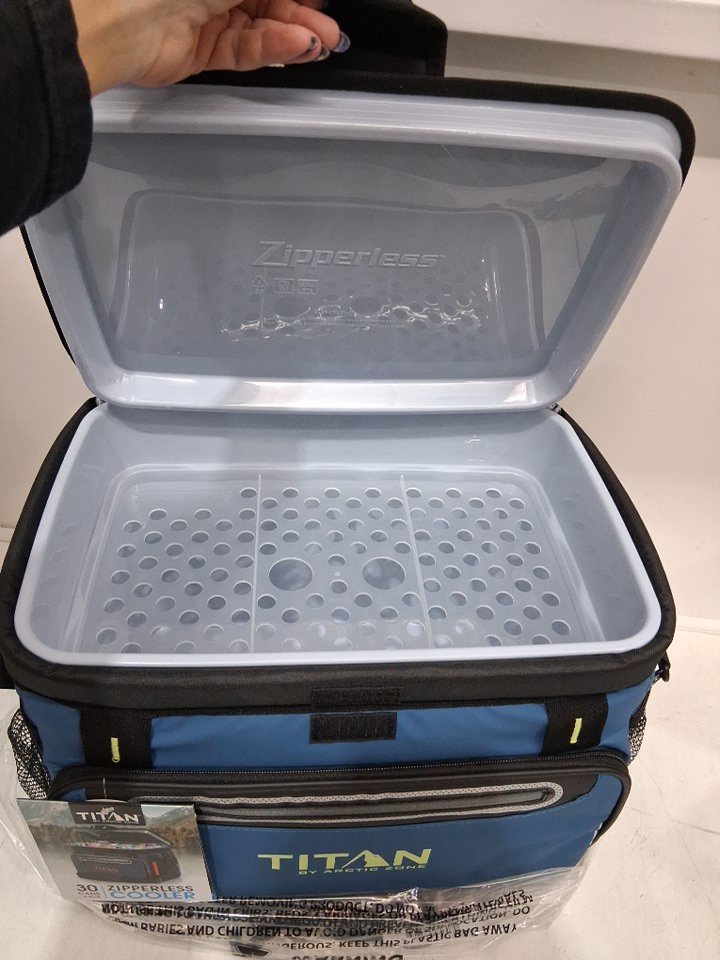 TITAN BY ARCTIC ZONE ZIPPERLESS PORTABLE COOLER WITH STRAP - 30 CANS - Marine Blue