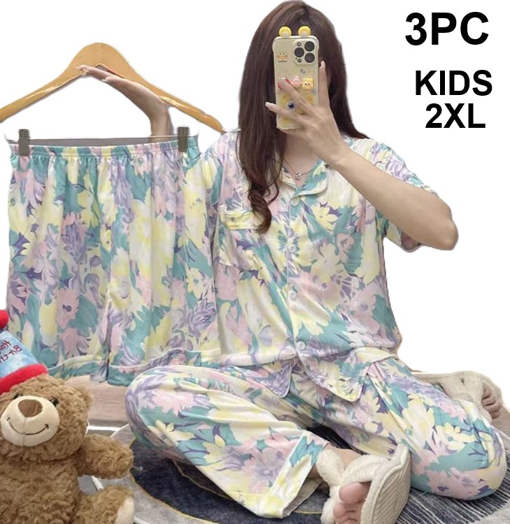 3pc kids Korean Cute terno nightwear set (shirt/ pajama/shorts) - 2xl - yellow/pink/green