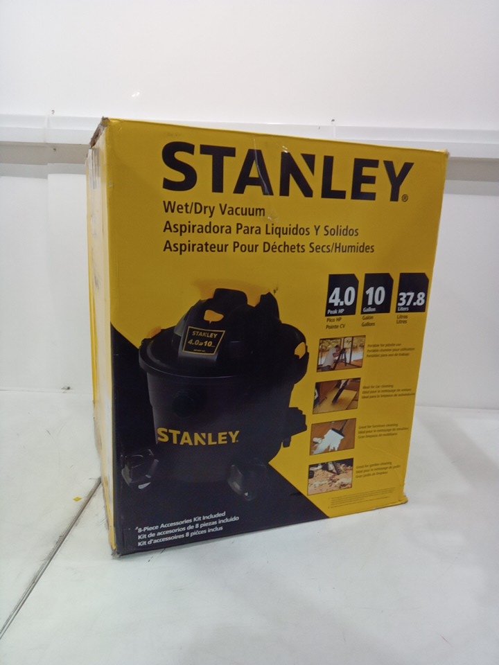 Stanley wet/dry strong suction large capacity shop vacuum - 10 gal 4hp - black/yellow (model: sl18191p)