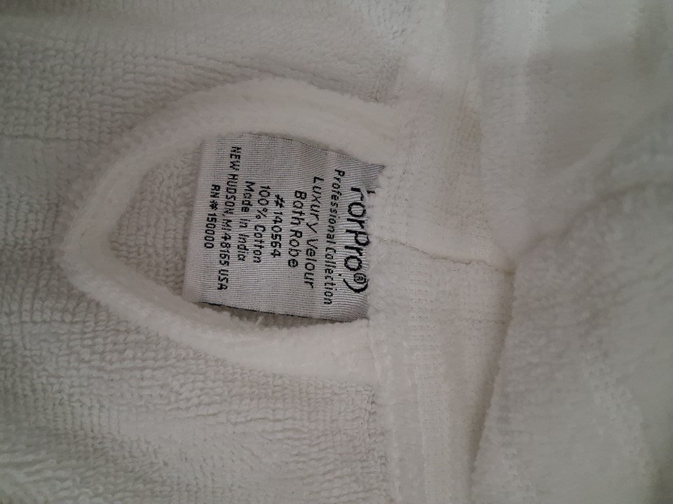 FORPRO LUXURY VELOUR BATH ROBE - 100% COTTON - OSFM - WHITE