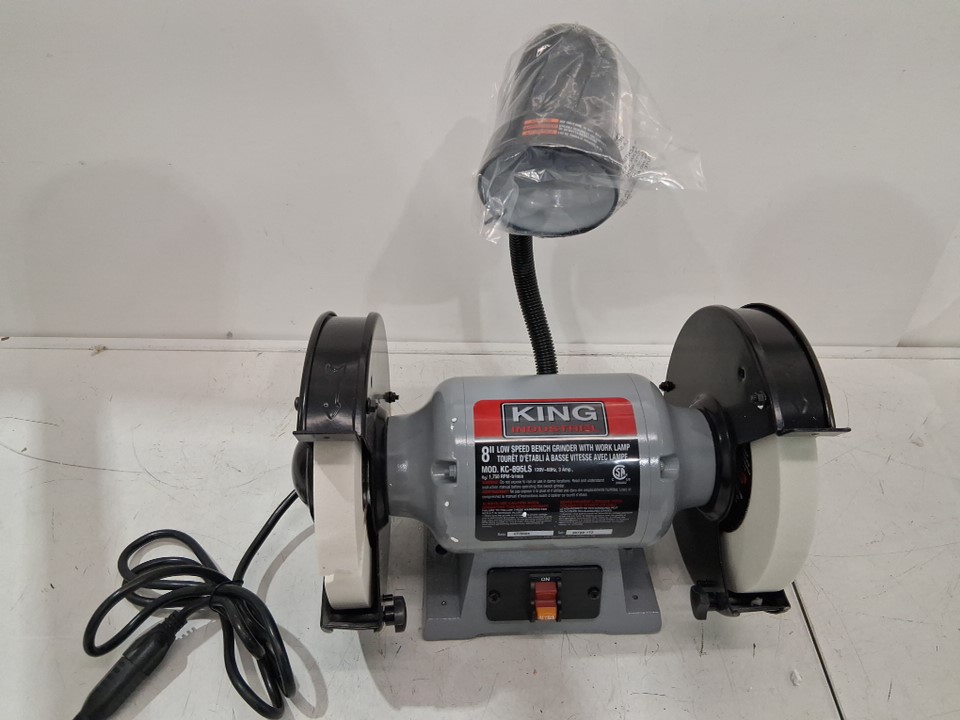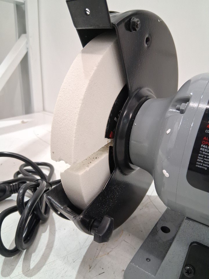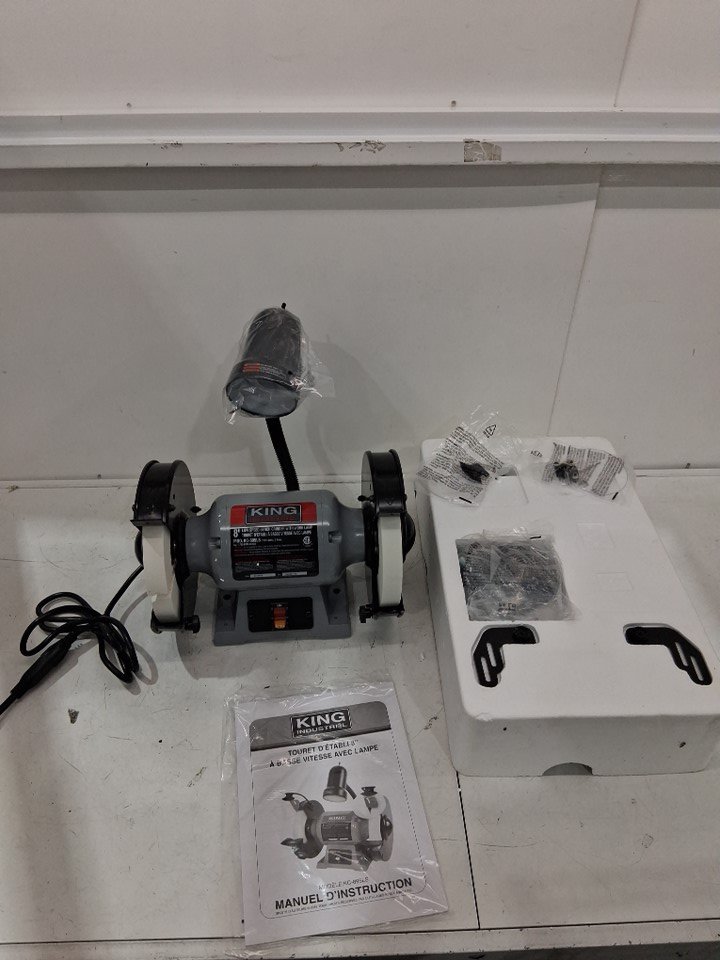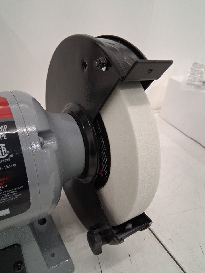 please note that one of the grinding wheel is broken and while turning on the machine, it is making sound but not rotating. the wheel can be replaced; you will have to purchase the compatible wheel separately (see photos).