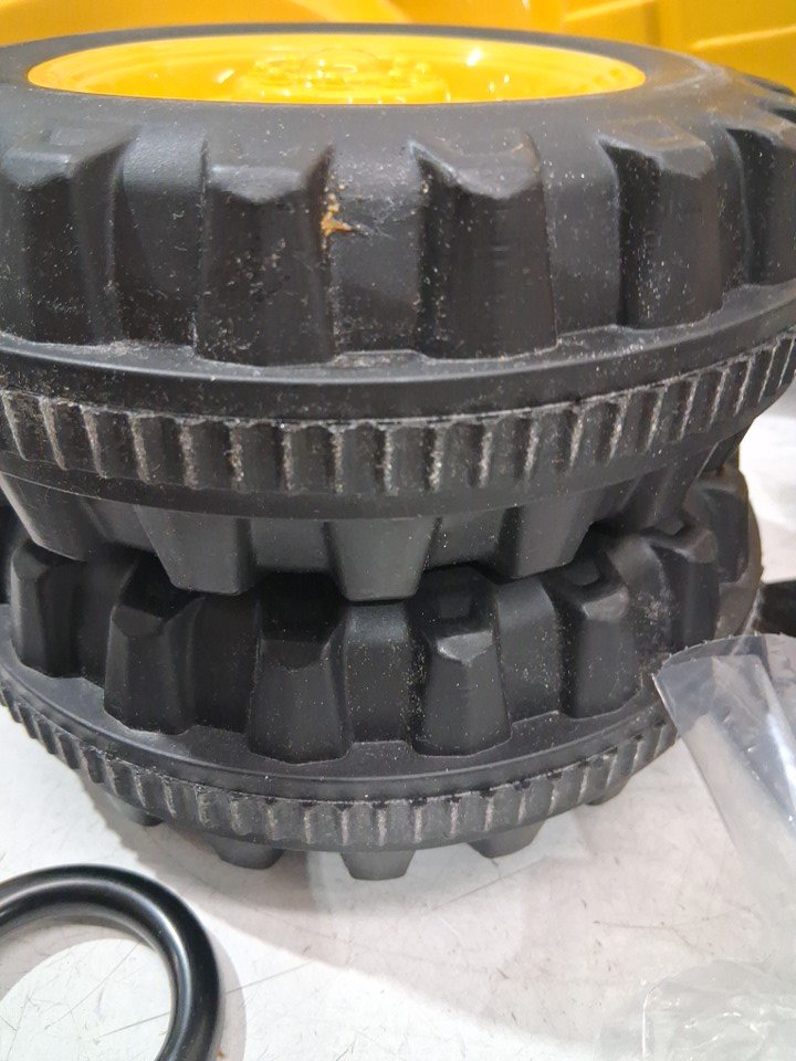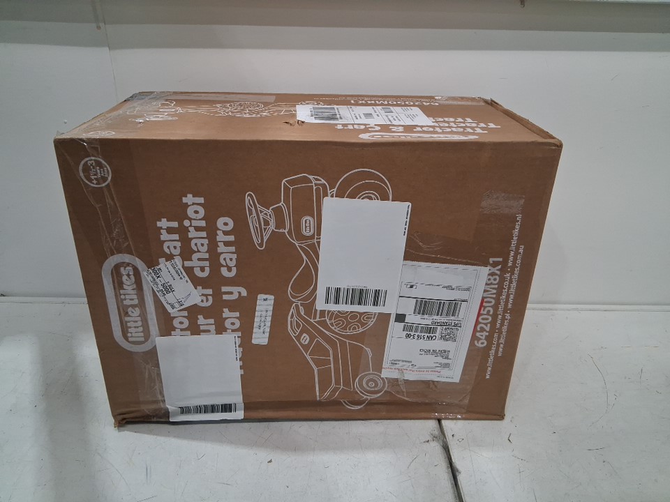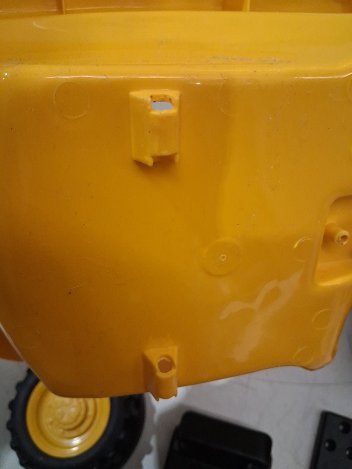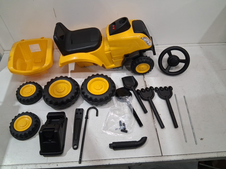 item has small amount of wheel scuffs, wear marks around assembly points and minor light use scratches around the body. please note item does not come with assembly instructions or the decal stickers