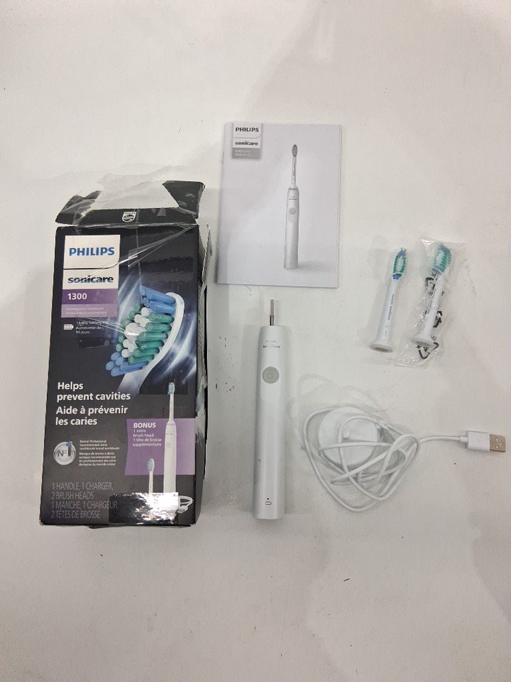 PHILIPS SONICARE 1300 RECHARGEABLE ELECTRIC TOOTHBRUSH with two brush heads - WHITE (MODEL: HX3642/02)