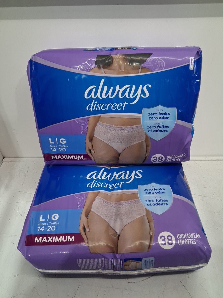 76PK Always Discreet Adult Incontinence Underwear for Women and Postpartum - large maximum (sizes 14-20)