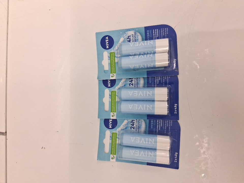 3 (2PK) NIVEA HYDRO CARE MOISTURIZING LIP BALM W/ ALOE VERA, NATURAL AVOCADO & SHEA BUTTER - 24H HYDRATION - 4.8G
