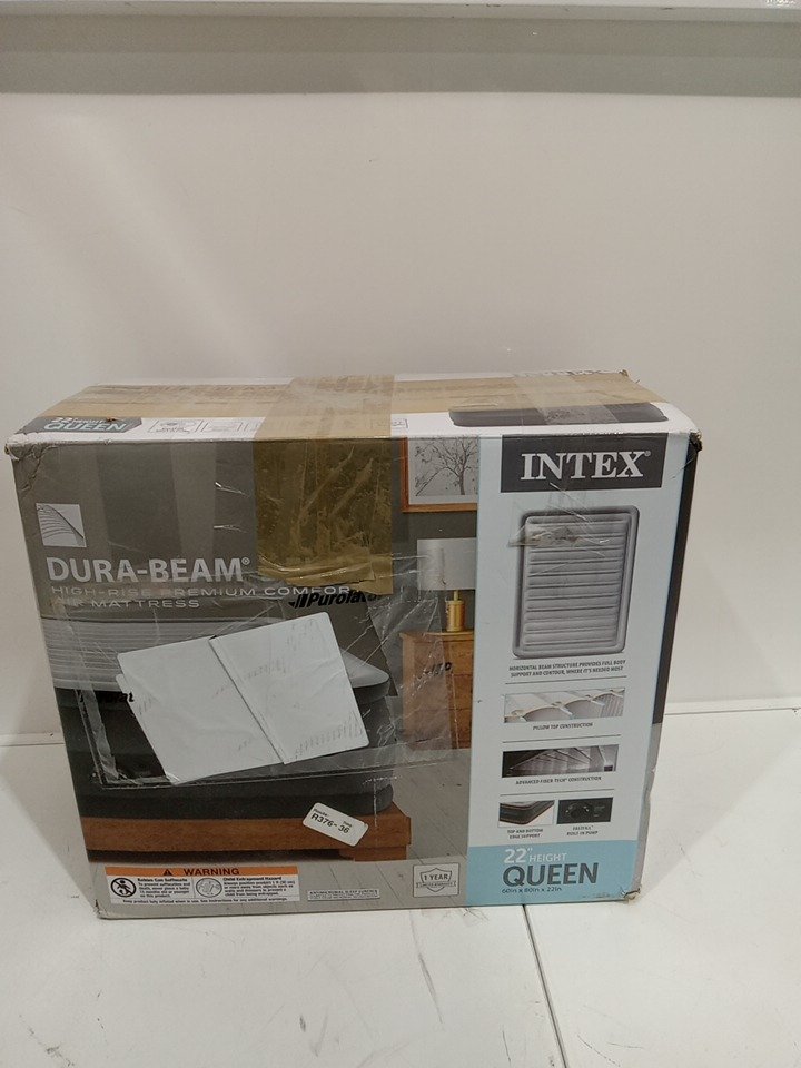 Intex DuraBeam Deluxe Comfort Plush Air Mattress with Built in Electric Pump - QUEEN - 80" x 60" x 22" - grey/dark blue (model: 64417ed)