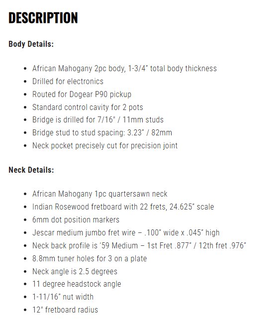 precision guitar kits 58 double cut jr - 59" neck - natural wood