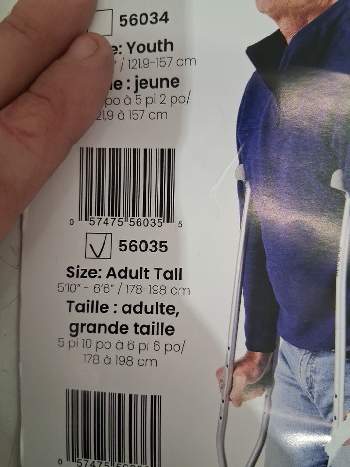 BIOS LIVING SET OF ALUMINUM CRUTCHES - adult - 5ft 10" to 6ft 6" - SILVER (MODEL: 56035)