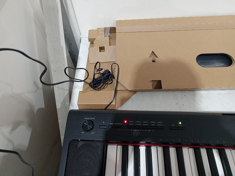 Upon inspection we have found some scuffs and blemishes on the piano as well as Styrofoam packaging stuck on the piano, this seems to be due to shipping and handling, this item has been tested for power and is confirmed to be working. see photos below.
