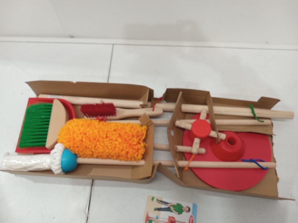 6PC MELISSA & DOUG LET’S PLAY HOUSE! DUST! SWEEP! MOP! PRETEND PLAY SET - KID-SIZED With BROOM, MOP, DUSTER, BRUSH, DUSTPAN, STORAGE STAND - MULTICOLOUR (MODEL: 96049)
