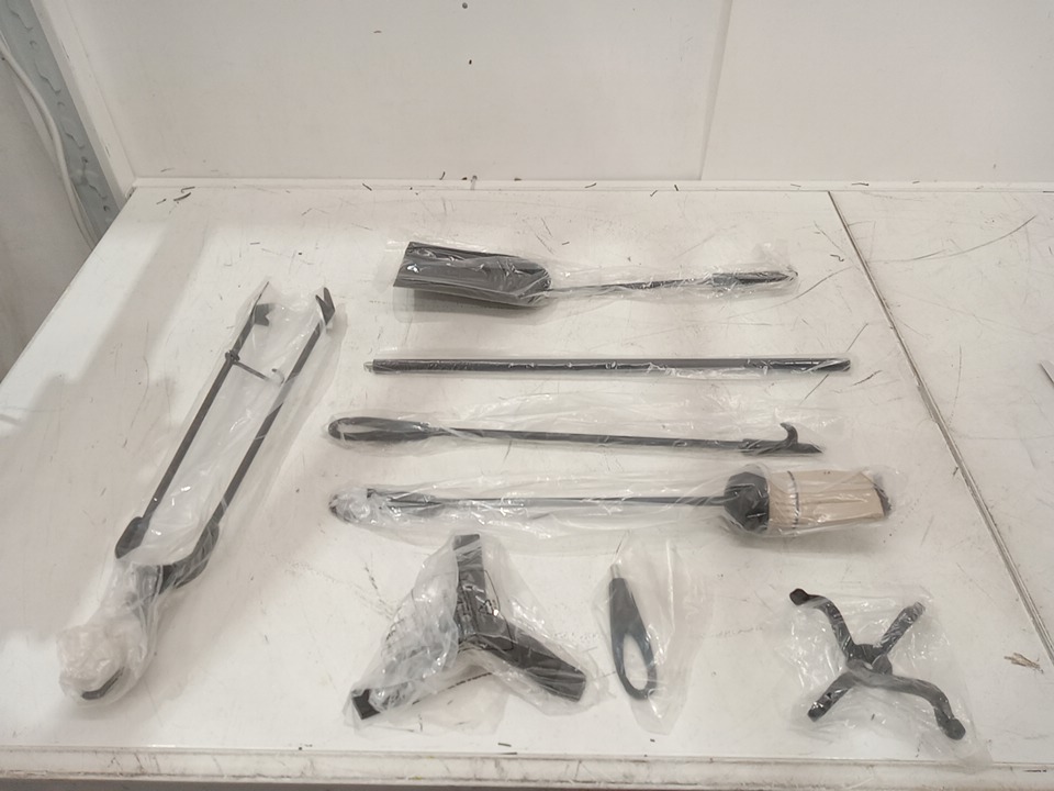 5pc Mondawe Fireplace Tool Set with Pedestal, Poker, Tong, Brush and Shovel - 18" - black (model: hw71635bk)